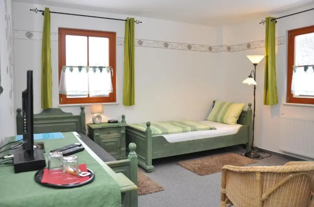 Das Steakhouse & Pension Crazy Horse in Suhl ist eine gastfreundliche Unterkunft mit bequemen Zimmerangeboten, die über private Badezimmer, Sitzecken, kostenlose Toilettenartikel, Duschen sowie Teppichböden verfügen. Jedes Zimmer ist außerdem mit einem Fernseher und einem Kleiderschrank ausgestattet. Die gastronomischen Angebote umfassen ein Steakhouse-Restaurant, das sowohl zu Mittag als auch abends speist und für sein fröhliches Frühstück bekannt ist. Gäste profitieren von zusätzlichen Dienstleistungen wie freiem WLAN, Fahrradverleih und kostenpflichtigen Privatparkplätzen direkt vor Ort. Ausgedehnte Wanderungen oder Radtouren sind aufgrund der nahegelegenen Landschaft möglich. Das Hotel befindet sich in der Carl-Fiedler-Straße 56, 98527 Suhl, Deutschland.
